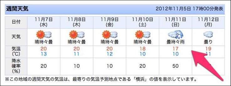 さて、気になるお天気予報(11/5現在)ですが・・・