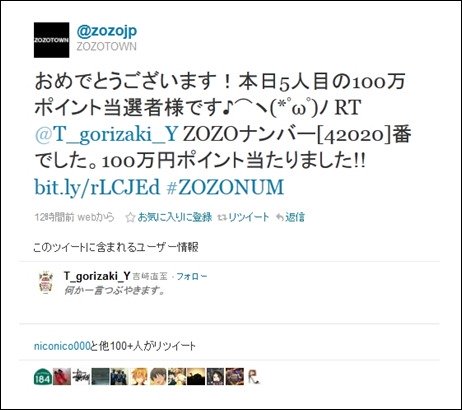ツイートしすぎワロタ、下4桁が2020番目なら100万円分のポイントゲット!zozotownのキャンペーンを検証してみました