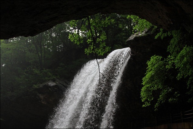 続いて、上高井郡高山村にある雷滝。松川渓谷の本流が雷鳴のように轟音を立てて落下しているので「雷滝」というそうです。滝の裏側を通り見ることができることから「裏見の滝」とも言われているとか。