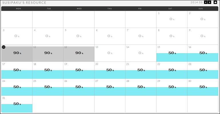仕事のリソースがどれくらいかをカレンダーで表示するサービスを作りました。http://resource-cal.info